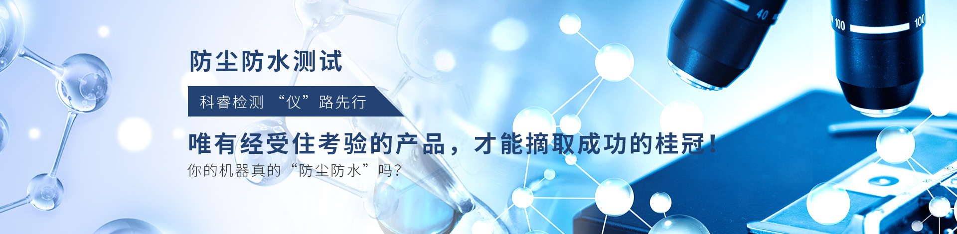 科睿防塵防水測試采用多款專業設備,專業檢測產品在各種砂塵環境中的密封性,同時檢驗設備是否具備在淋雨暴露期間或之后滿足其性能要求的能力以及由于淋雨造成的物理損壞以及雨水排除系統是否有效等,免除您使用設備的后顧之憂。